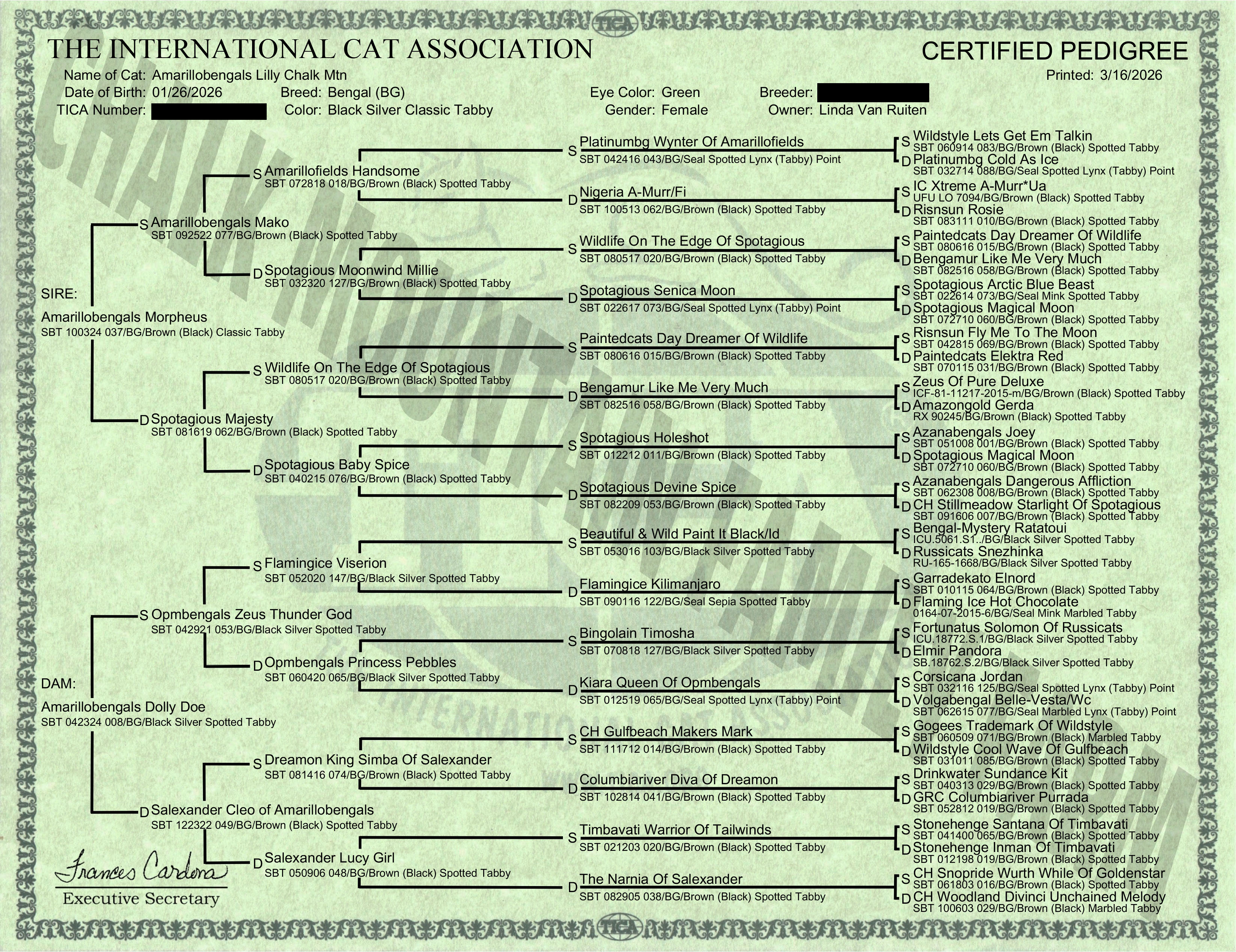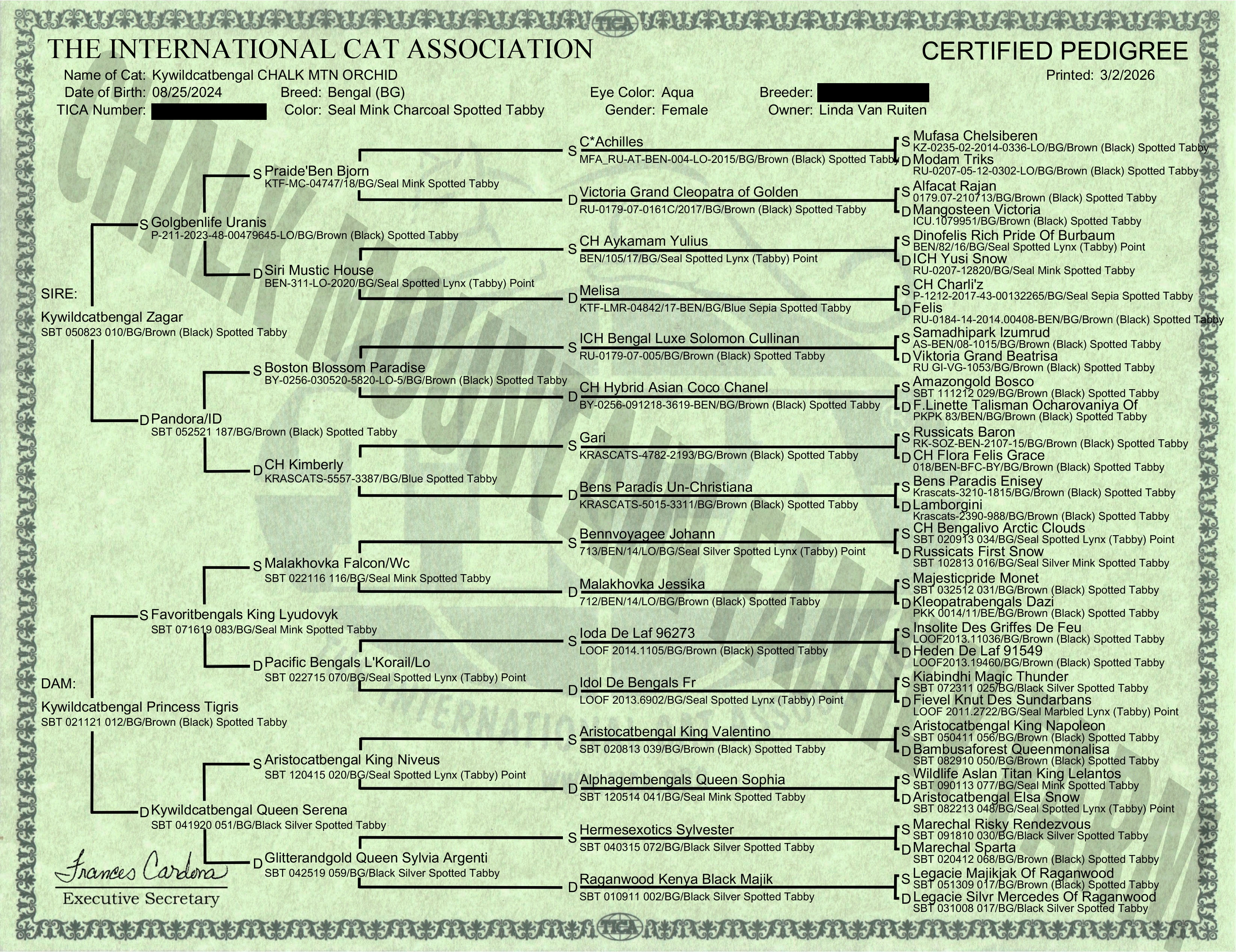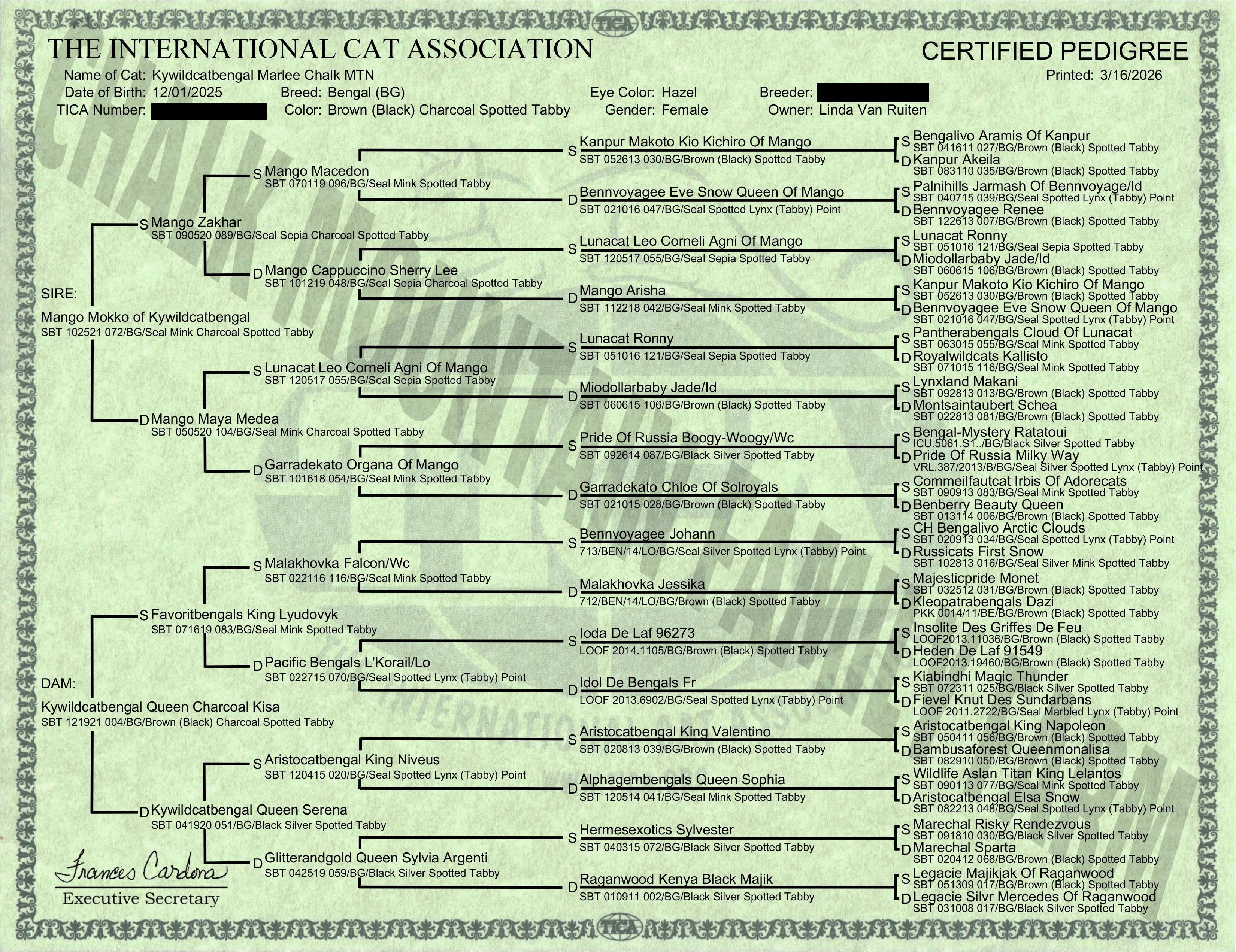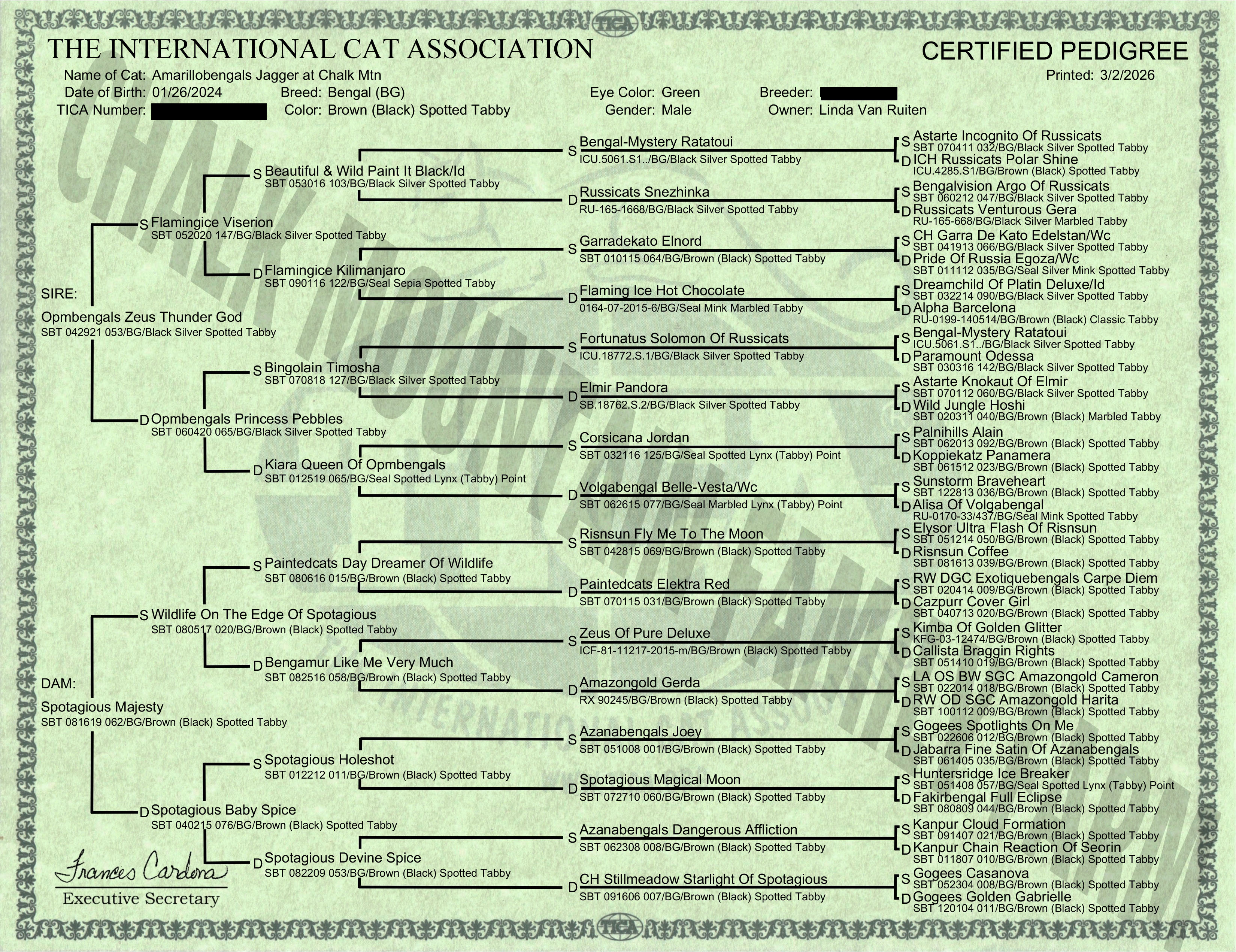Registration & Pedigree: TICA RegistrationPedigree