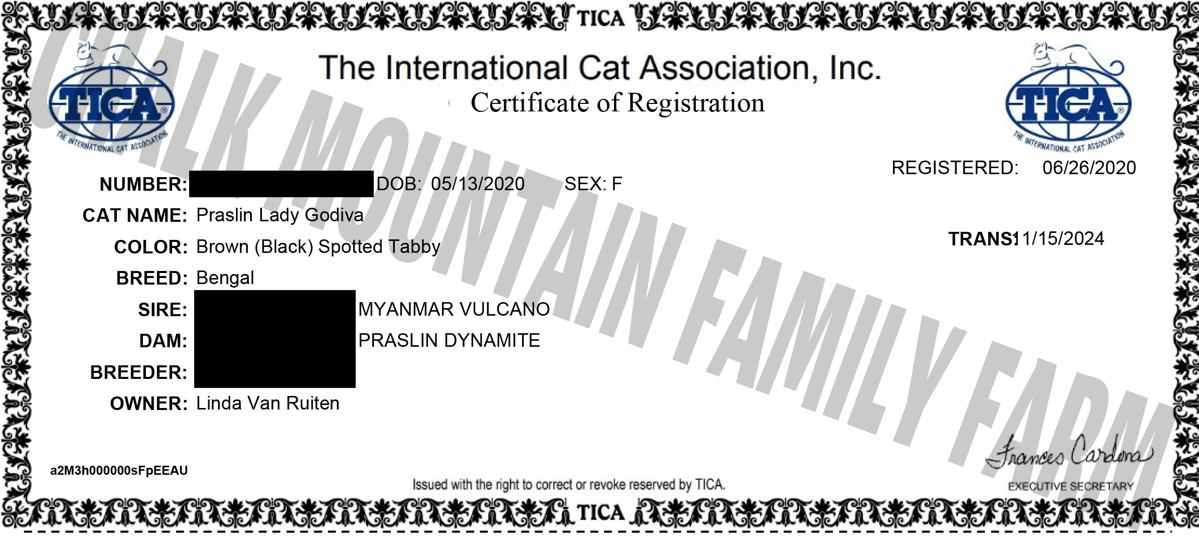 (Retired)Registration & Pedigree: TICA Registration